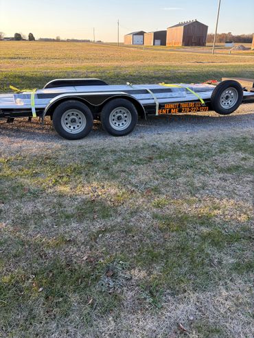 • 20 ft steel trailer includes 12,000 pound winch, jack, and straps
